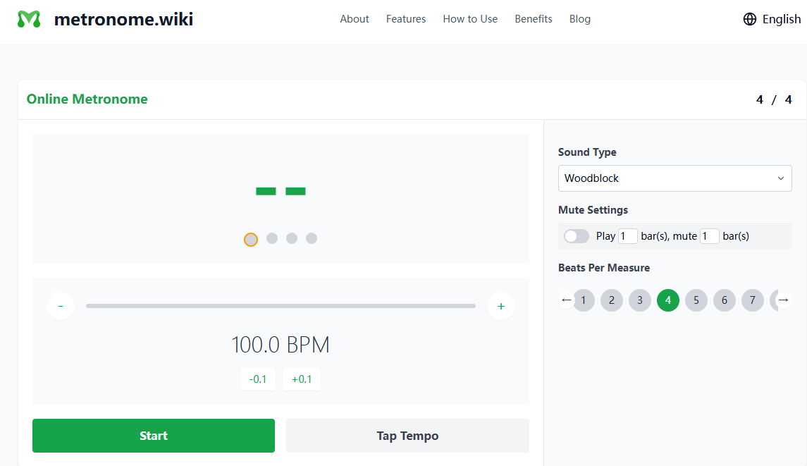 Discover the ultimate free online metronome at Metronome.wiki. Set precise tempos (BPM), customize time signatures, and improve your rhythm skills. Perfect for musicians, students, and teachers, our easy-to-use metronome works seamlessly on all devices. Tap tempo and more!